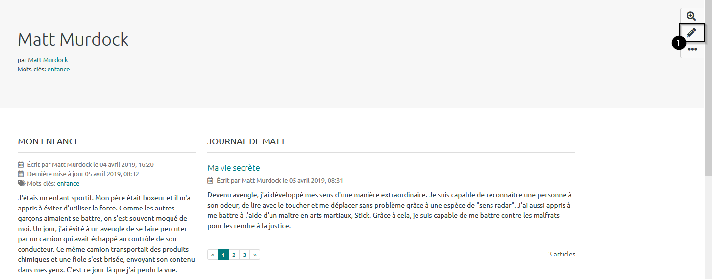 Étape 1 : Dans une de vos pages, cliquez sur l'icône représentant un crayon pour passer en mode édition