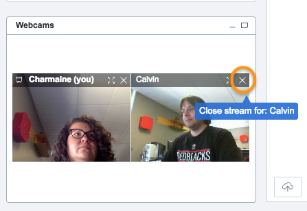 Vous saurez que vous avez atteint votre bande passante maximale lorsque les webcams ne sont pas rafraîchies ou commencent à “geler” (image fixe) . Si un utilisateur individuel ne parvient pas à diffuser un grand nombre de webcams, il peut alors les fermer en sélectionnant le “X” du flux entrant jusqu'à ce que leur bande passante soit désaturée.