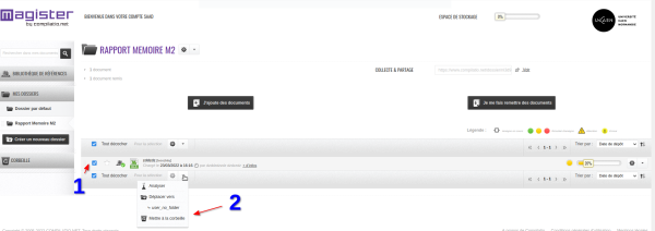 La remise d'un mémoire peut avoir pour conséquence pour l’étudiant de remettre plusieurs fois son document, soit dans les activités devoir différentes (évaluation à mi-parcours, par exemple), soit dans la même activité devoir. Dans ce cas on désactivera systématiquement l'ajout des documents à la bibliothèque de référence, quitte à le réactiver quand les documents seront définitivement rendus.