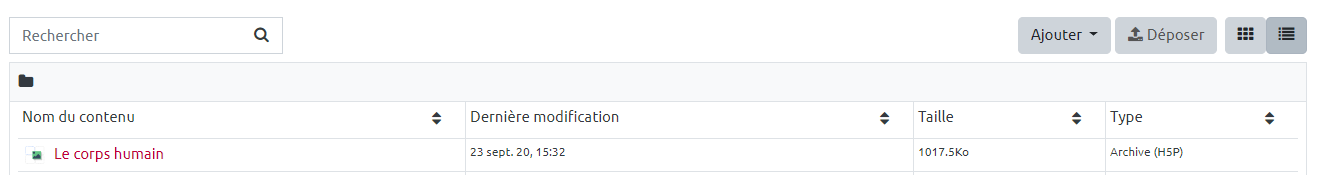 Votre activité apparaît à présent dans la liste des activités H5P créées.
