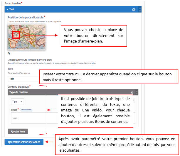 Une fois votre arrière-plan paramétré, vous serez en mesure de modifier les différents boutons qui apparaîtront sur votre image, voir la capture ci-dessous.