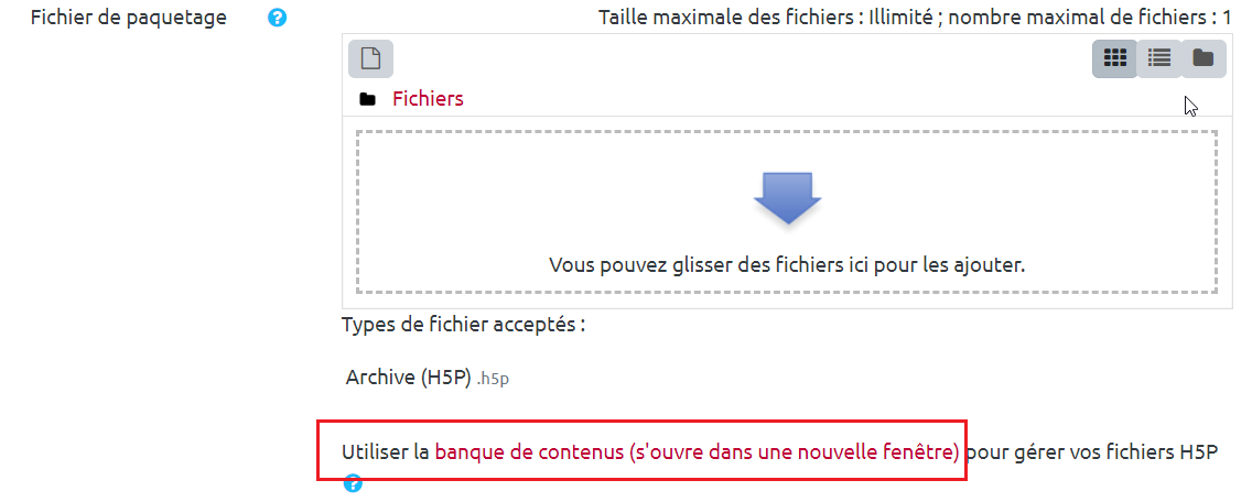 Cliquez sur “banque de contenus” pour accéder à la banque de contenus H5P.