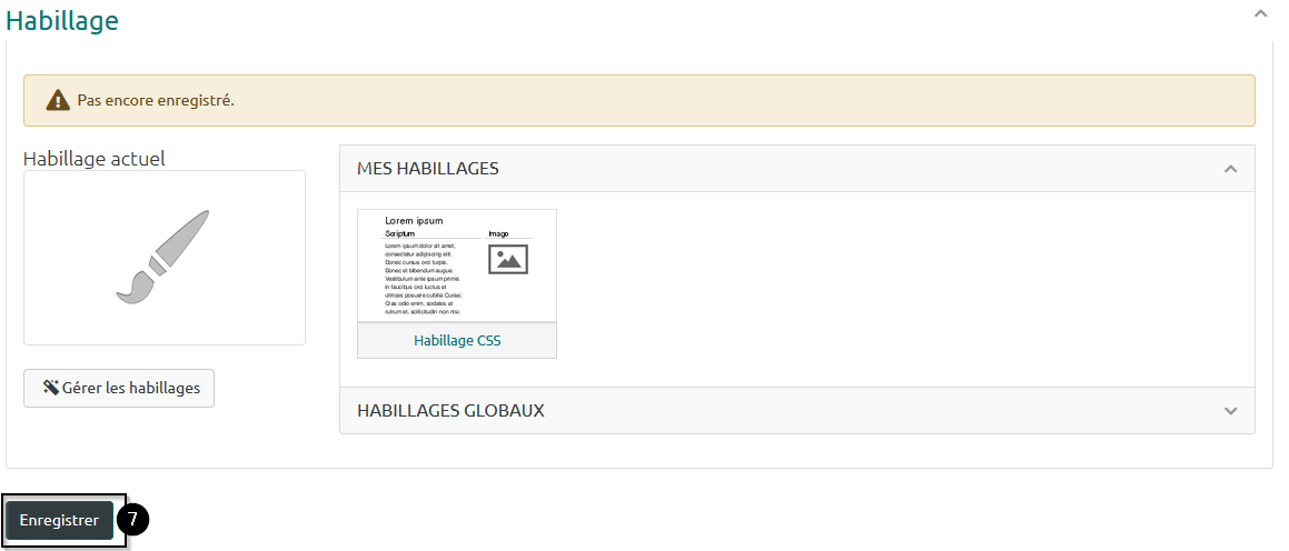 Cette section vous permet de choisir le thème de votre page parmi ceux que vous avez créés et les habillages que vous avez ajoutés à vos favoris.