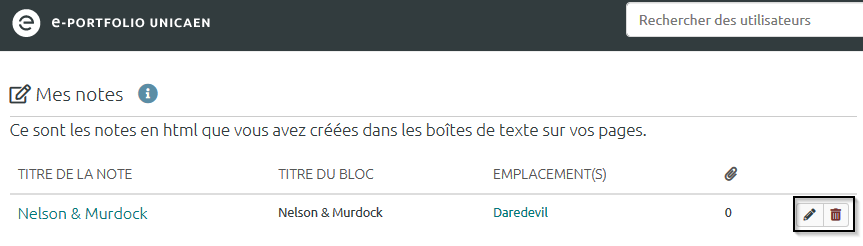 Grâce à cette rubrique, il est possible de modifier le contenu d’un bloc « Notes », sans avoir à retourner sur la « Page » ou les « Pages » où il a été initialement ajouté.