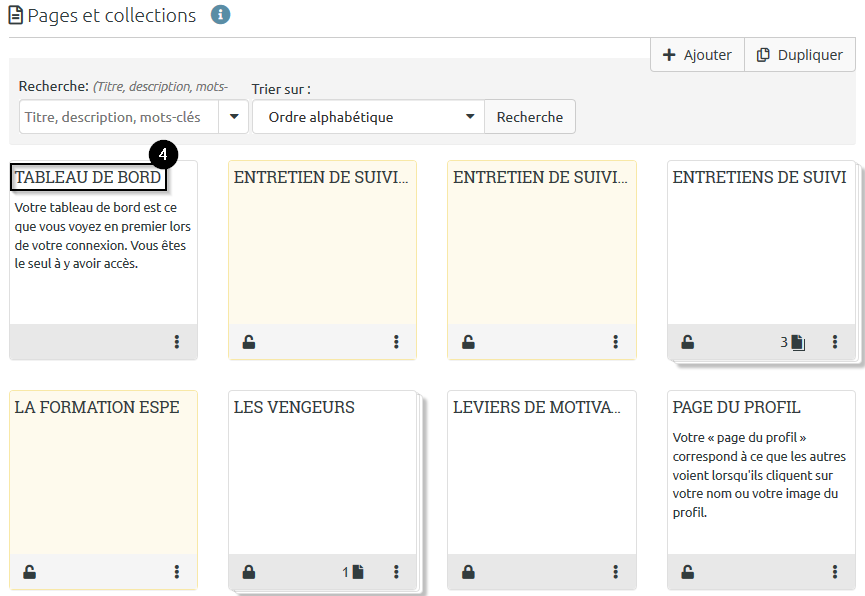 La rubrique « Notes » liste les différents blocs appelés « Notes » qui ont été préalablement ajoutés dans des « Pages », il n’est ainsi pas possible d’ajouter des « Notes » directement depuis cette rubrique. Pour modifier une note, cliquez sur l’icône représentant un crayon. Pour la supprimer, cliquez sur la poubelle rouge.
