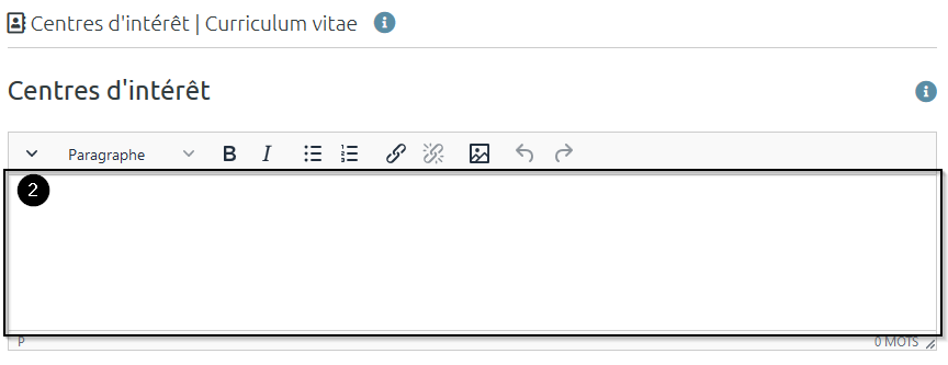 La rubrique « Centres d'intérêt » vous permet de lister vos centres d’intérêt dans l’onglet qui porte le même nom.