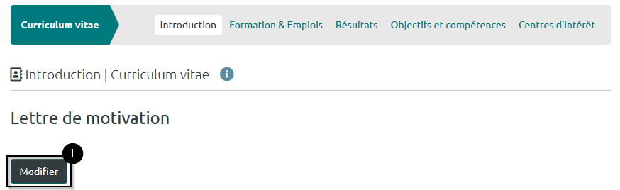 Dans cet onglet, vous pouvez décrire vos objectifs et compétences personnels, universitaires et professionnels.