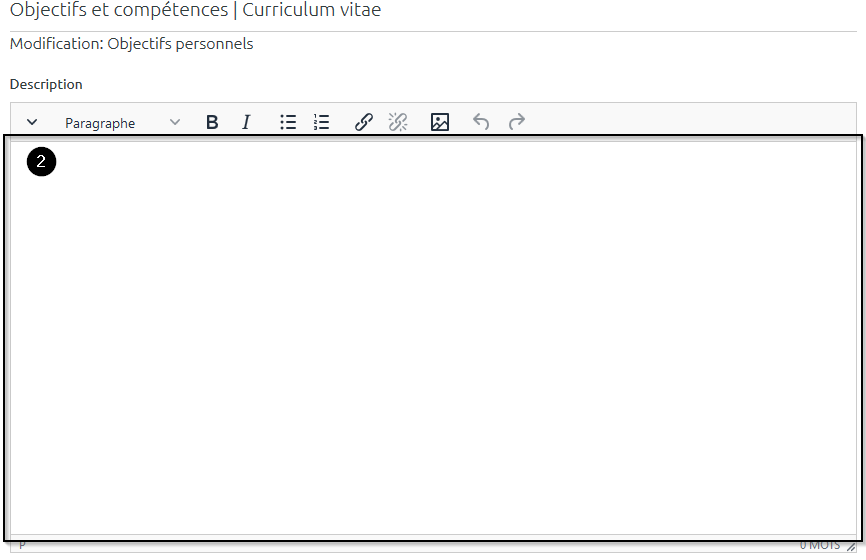 Étape 2 : Listez vos objectifs ou compétences en remplissant le champ de texte long