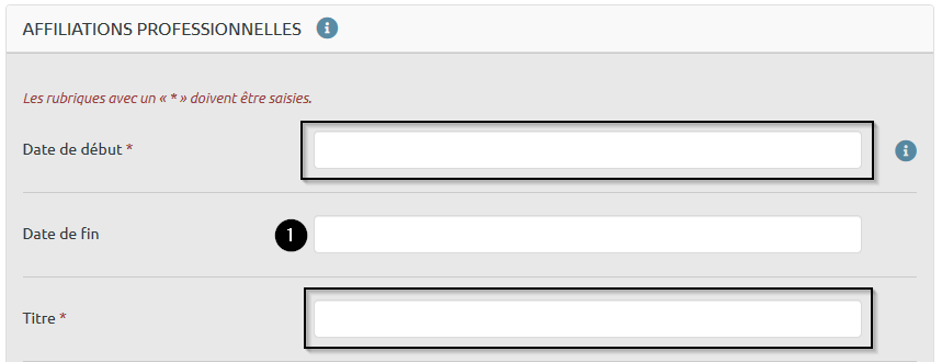 Étape 1 : Entrez la date de début et le titre de votre affiliation