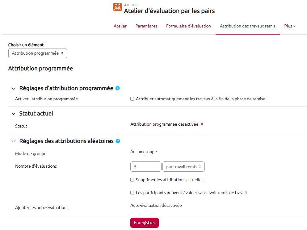 Cochez la case « Ajouter les auto-évaluations » pour que chaque étudiant évalue son travail en plus de ceux de ses pairs.