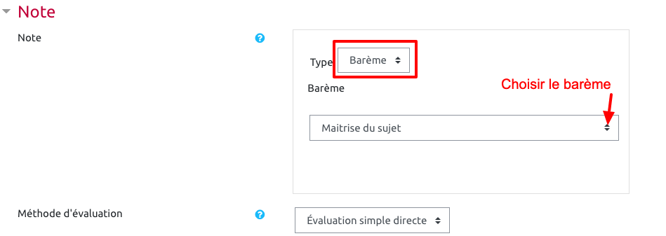 Les barèmes peuvent être utilisés dans les activités Forum, Glossaire, Base de données, Leçon et Devoir pour l'évaluation et la notation des productions des étudiants.