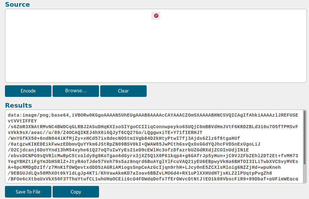 - Convertir l'image en base64, par exemple avec un outil en ligne, telle que https://www.developertoolkits.com/base64/encoder \\