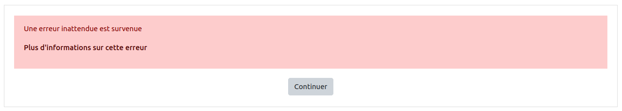 Lors de l'import d'une activité test (quiz) depuis le panier d'activités, un message d'erreur apparaît : Une erreur inattendue est survenue
