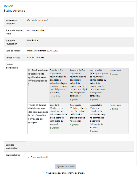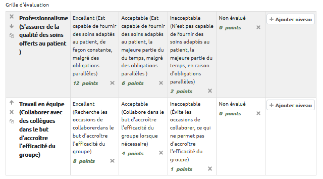 Voici l'exemple de grille que l'on va intégrer dans l'évaluation avancée du devoir :