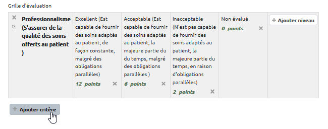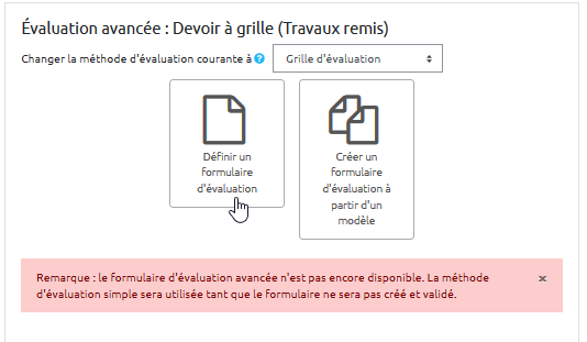 - dans évaluation avancée, choisir “grille d'évaluation”
