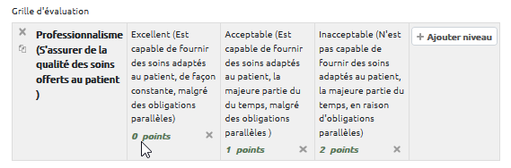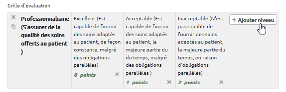 - cliquer dans les cases suivantes pour indiquer les niveaux de performances et ajouter des niveaux si besoin