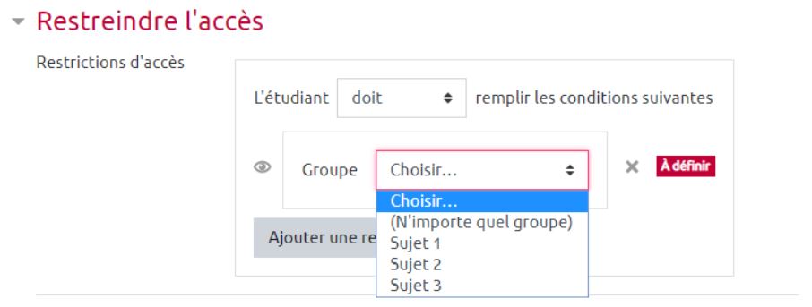 Pour chaque devoir (contenant chacun 1 sujet), il faut ajouter une contrainte d'accès.