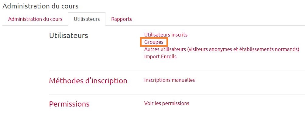 Affichez l’onglet « Utilisateurs » et sélectionnez l'item « Groupes »