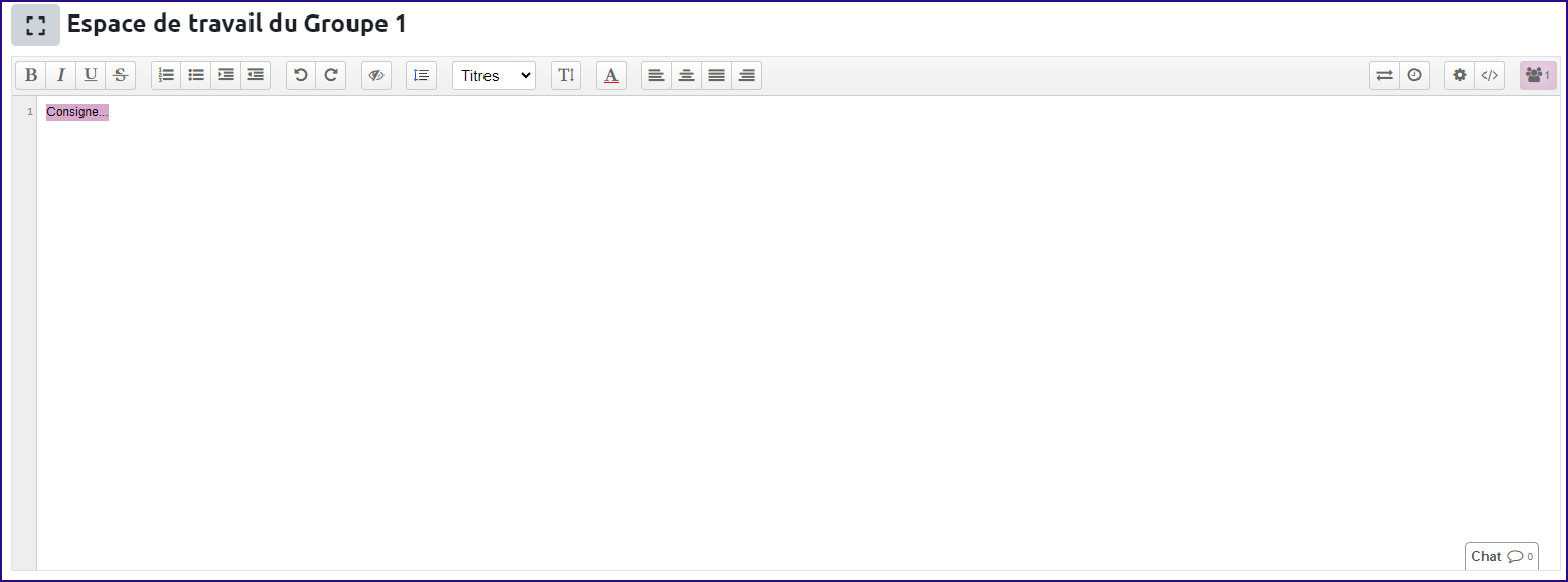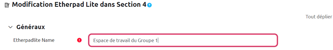 - n activités Etherpad pour n groupes (voir ci-dessous pour créer un etherpad de groupe) ;