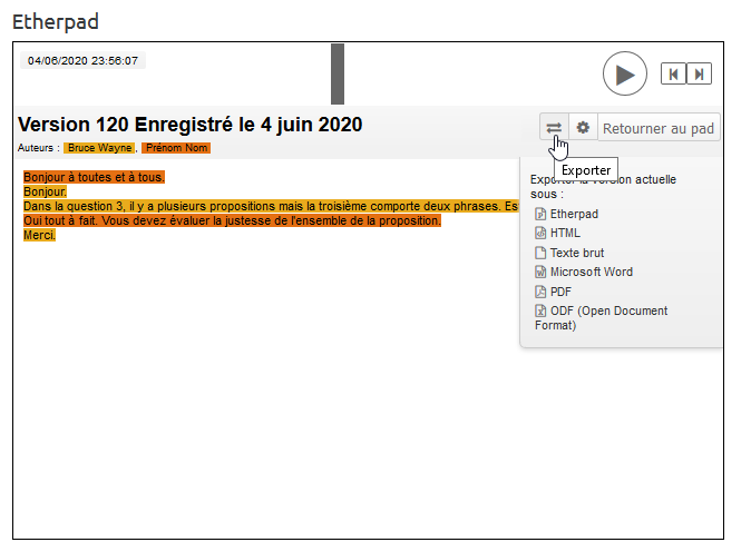 Revoir l'historique d'un Etherpad