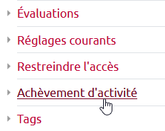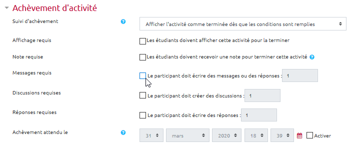 - Dans les paramètres du forum, cliquer sur “Achèvement d'activité” :