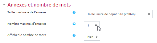 Afficher le texte sourceAnciennes révisionsLiens de retourExporter en PDFExportation ODTHaut de page Je veux supprimer le dépôt de fichiers dans un message (Annexes) Dans les paramètres du forum, cliquer sur “Annexes et nombre de mots” : choisir sur 0 dans “Nombre maximal d'annexes” souhaité : Retour aux paramètres avancés du forum Paramètres avancés du FORUM moodle/forum/parametres_avances/depot_annexe.txt Dernière modification : il y a 2 semainesde 127.0.0.1