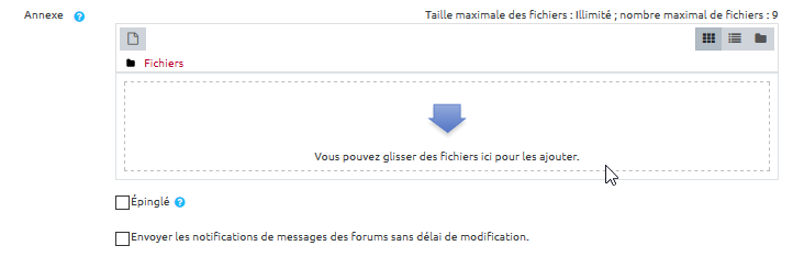 - “Annexe” : glisser le fichier dans l'espace de dépôt :