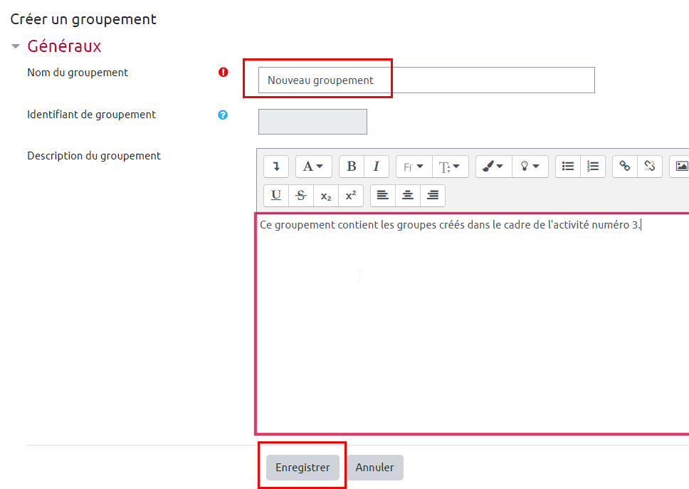 Étape 5 : Renseigner le nom du groupement