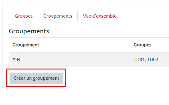 Étape 4 : Cliquer sur "Créer un groupement"