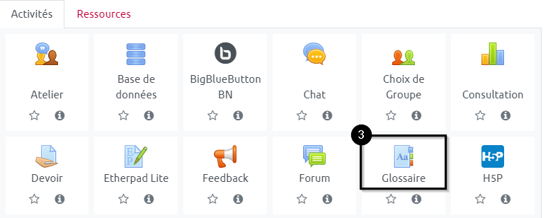 En mode “Édition”, il faut ajouter une nouvelle activité “Glossaire” :