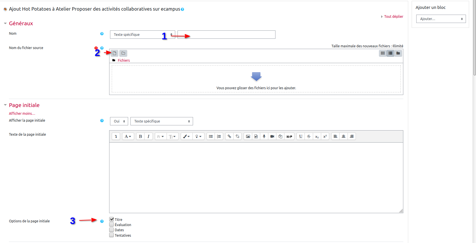 Importation de l’activité HotPotatoes dans Moodle et réglages