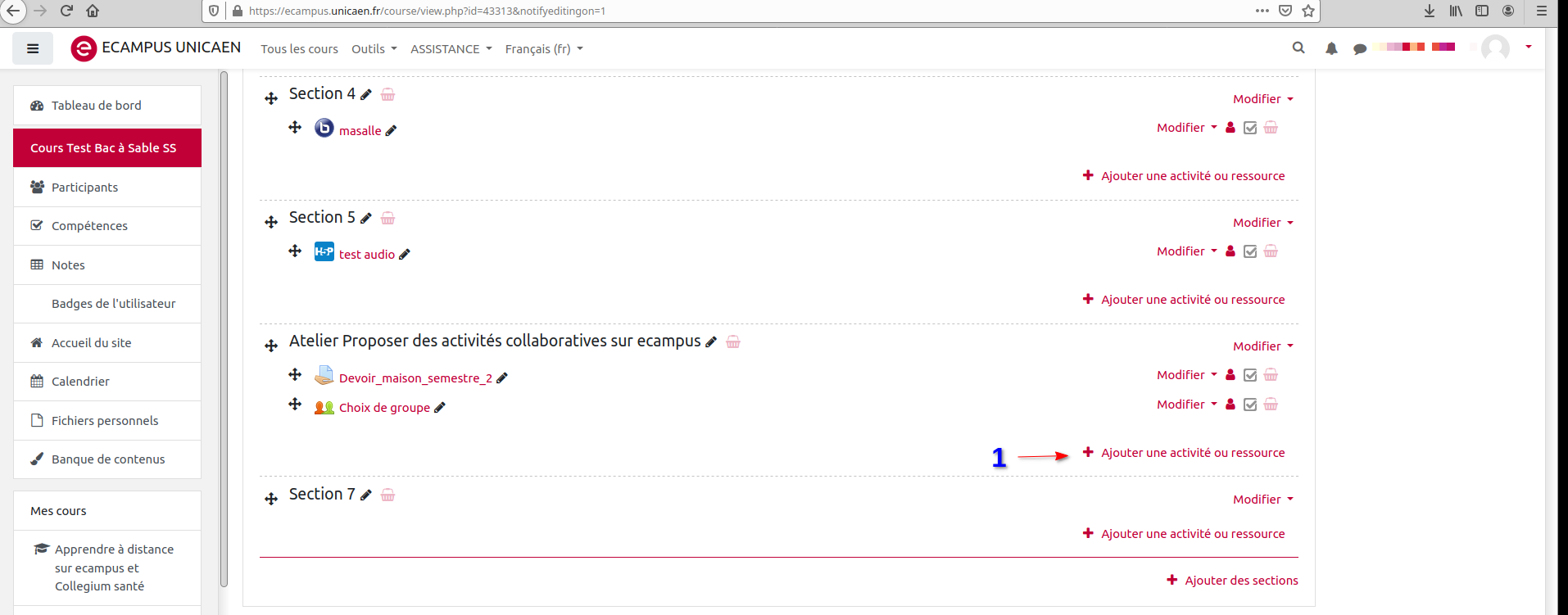 Après avoir cliqué sur l’activité souhaitée, ici un quiz ou QCM, une autre interface s’ouvre. Vous pourrez alors: