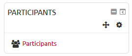 Dans tout espace de cours, vous avez à votre disposition un bloc “Participants” et/ou un lien “Participants” dans le menu général (à gauche).