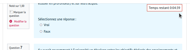 - Compte à rebours persistant (affichage du temps qui reste visible en permanence pour l’étudiant) :