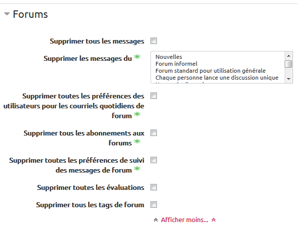 Vous pouvez aussi supprimer différentes traces liées aux activités du cours telles que :