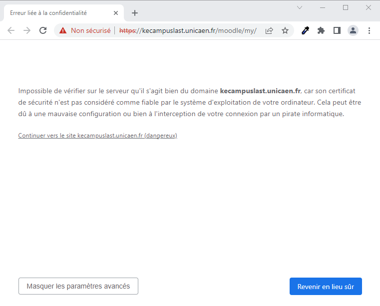 4. visiter la plateforme actuelle : https://ecampus.unicaen.fr/course/view.php?id=XXXXX (en remplaçant XXXXX par l'ID du cours)