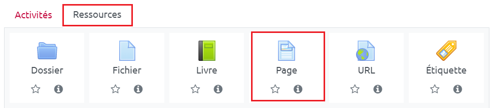Etape 3 : Sélectionner "Ressources" puis "Page"