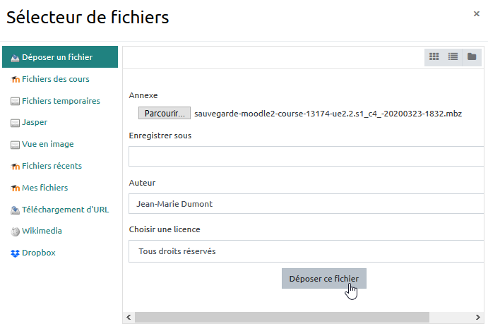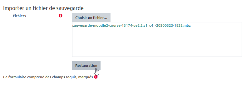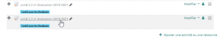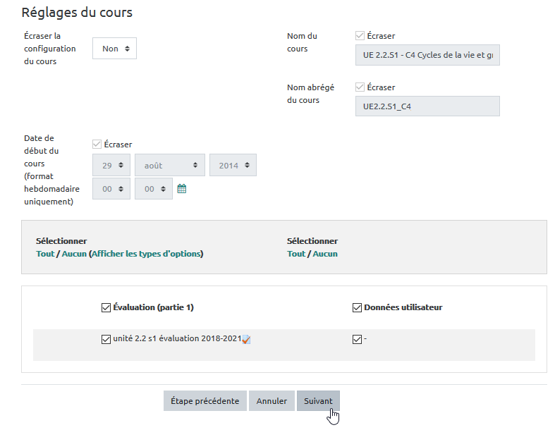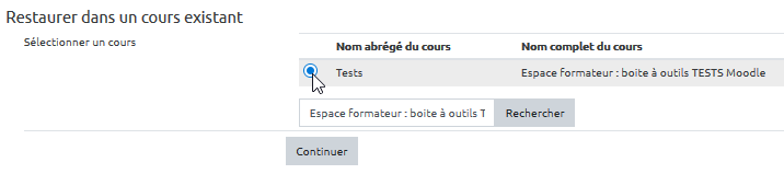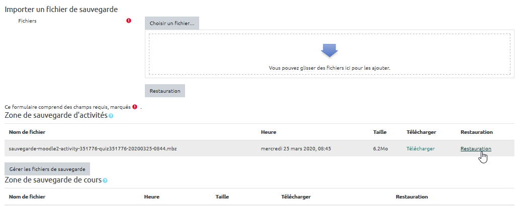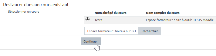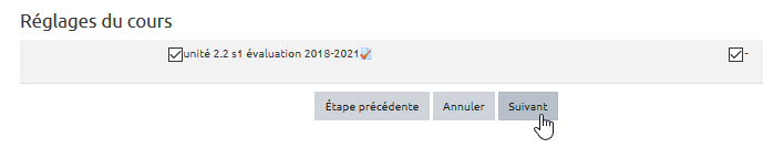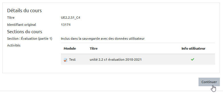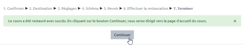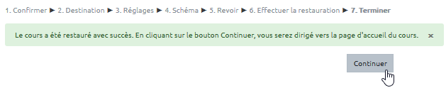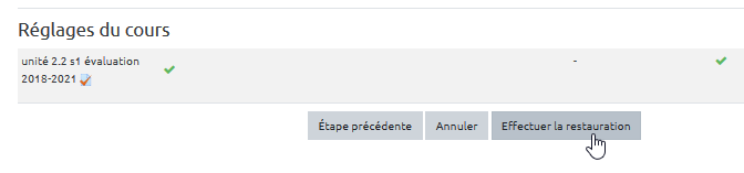 • Dans le cours de destination, vérifier que l'activité a été restaurée :