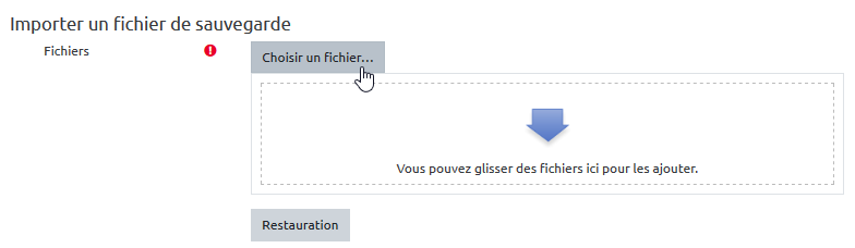 • Faire glisser le fichier de sauvegarde ou cliquer sur “Choisir un fichier” :