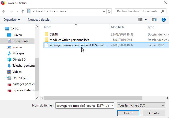 • Sélectionner le fichier de sauvegarde à restaurer :