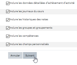 • Vérifier que toutes les cases sont cochées puis cliquer sur “Suivant” :