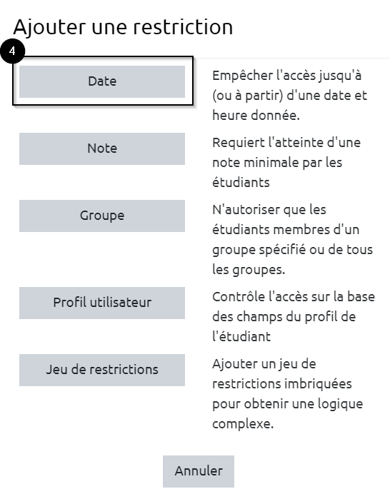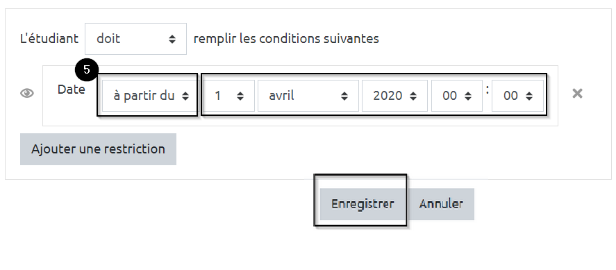 Restreindre l’accès d’une section ou d’une activité par date