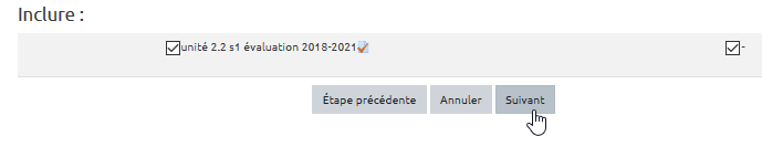 - Pour conserver les contributions et résultats des étudiants, il est conseillé de tout cocher sauf “Anonymiser les informations des utilisateurs” puis cliquer sur “Suivant” :