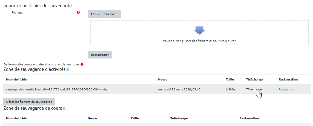 - Dans la zone de sauvegarde d'activité, cliquer sur “Télécharger” :