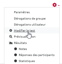 - cliquer sur le rouage puis sur “Modifier le test” :