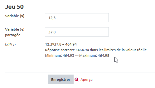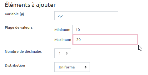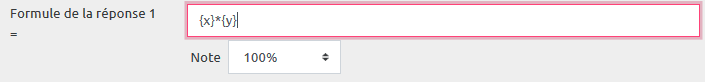 - Indiquer l’énoncé de la question en mettant entre accolades les variables utilisées, ici {x} et {y} :