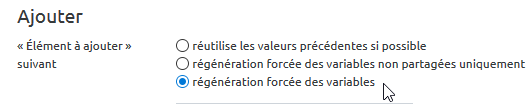 - Étape 4 : pour le choix des propriétés du jeu de données des variables, choisir pour toutes le variables nécessaires “utilisera un jeu de données partagé déjà existant” :