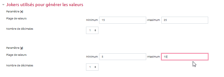 - Indiquer le texte de la question en mettant entre accolades les variables utilisées, ici {x} et {y} :