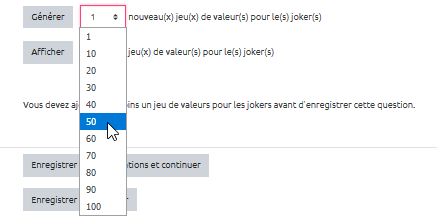 - Sélectionner le nombre de jeux de valeurs qui serviront aux étudiants :