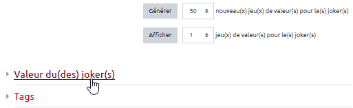 - Presque tout en bas de la page, cliquer sur “Jokers utilisés pour générer les valeurs” :